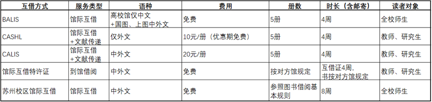 五、为我校师生提供部分高校图书馆的馆际互借证