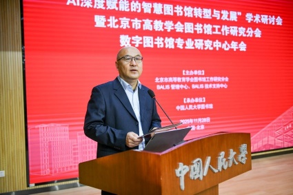 2025年11月28日,由北京市高教学会图书馆工作研究分会、Balis管理中心以及Balis技术支持中心主办、中国人民大学图书馆承办的“AI深度赋能的智慧图书馆转型与发展”学术研讨会暨2025数字图书馆专业研究中心年会在中国人民大学陕公大讲堂隆重召开。来自北京地区各高校图书馆、科研机构共计170余位与会人员齐聚一堂,围绕人工智能驱动的图书馆业务变革、知识服务创新和未来发展趋势开展深入研讨。
