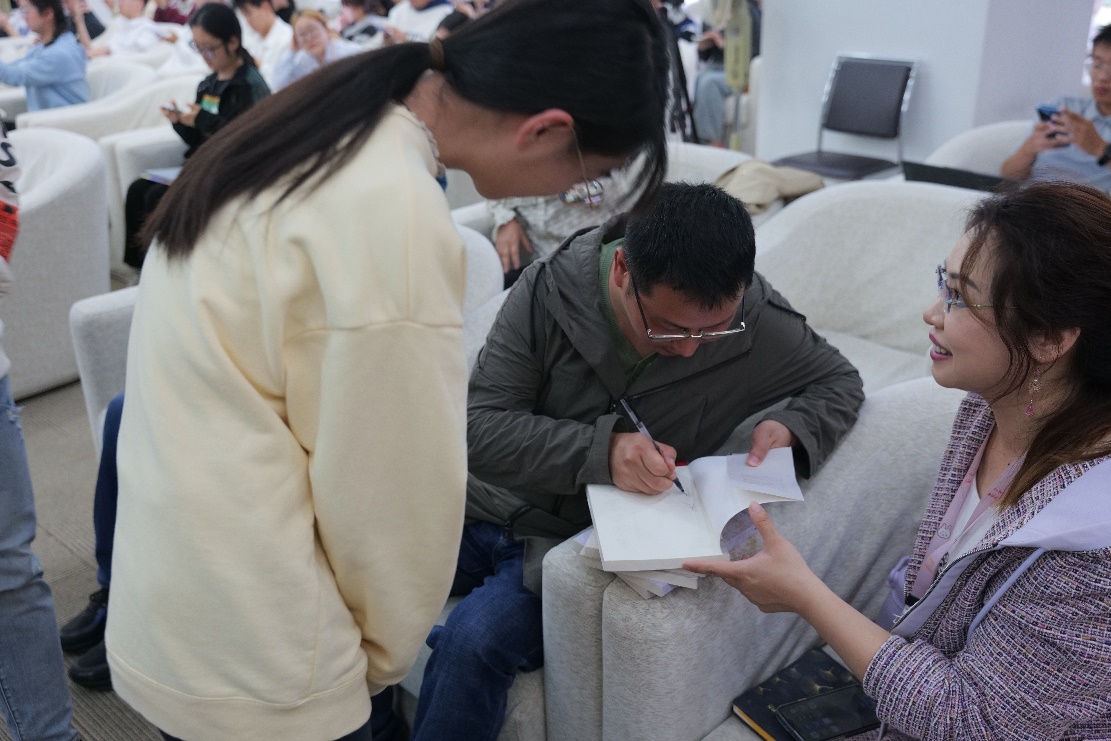 讲座现场气氛热烈,在互动环节中,师生们纷纷就建本文化、文学创作等相关话题积极提问,吴俣阳对其作了细致解答,并分享了自己在文学创作过程中的心得与体会。此外,参与互动的师生还获赠了带有亲笔签名的《大宋风华》一书。