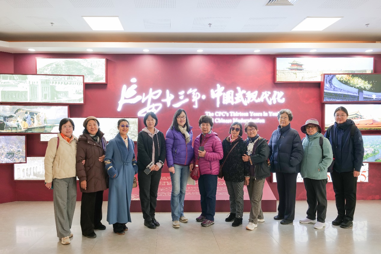 在通州校区管理部的陪同下,退休老师们首先参观了“延安十三年与中国式现代化”展览,通过展示的历史图片、陈列的革命文物以及现场讲解,从创造现代化根本社会条件、锻造中国式现代化领导力量、孕育中国式现代化核心要素、探索中国式现代化成功道路、以高等教育推进中国式现代化五个板,重温中国共产党在延安时期艰苦奋斗的峥嵘岁月,深刻感悟延安十三年对中国式现代化的历史贡献,延安精神对推动中华民族伟大复兴的重要意义。