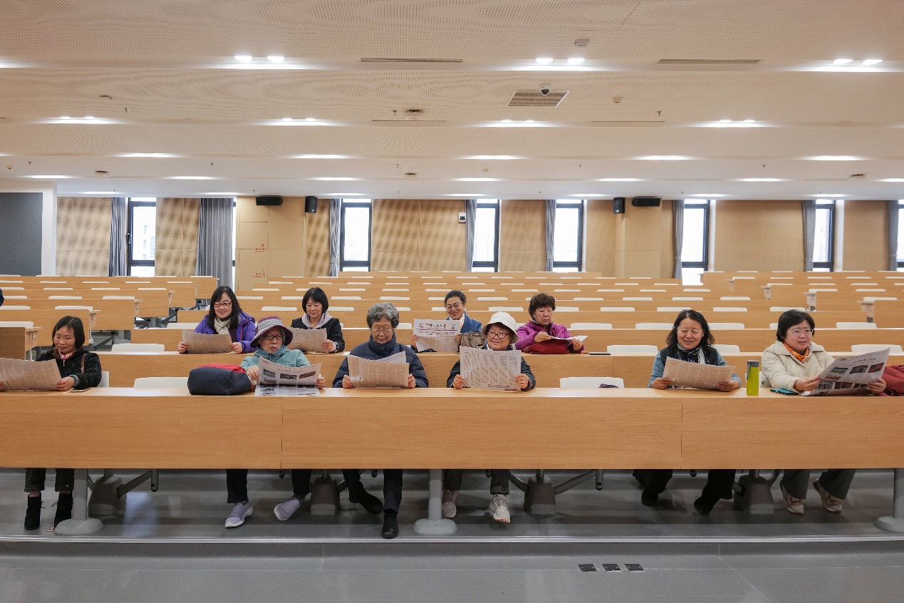 随后进行了“我读校报”活动。老同志们人手一份校报,指尖划过文字与图片,他们不时相互交流,眼中满是欣慰与感慨。“看到校报上报道的学科建设成果,真为学校如今的发展速度感到自豪!”不少老同志表示,校报不仅是记录学校发展历程的“档案册”,更是传递校园温情的“连心桥”。通过阅读校报,老同志们能及时了解学校在人才培养、师资建设、校园建设等方面的新动态,仿佛仍置身于校园之中,与学校的发展同频共振。